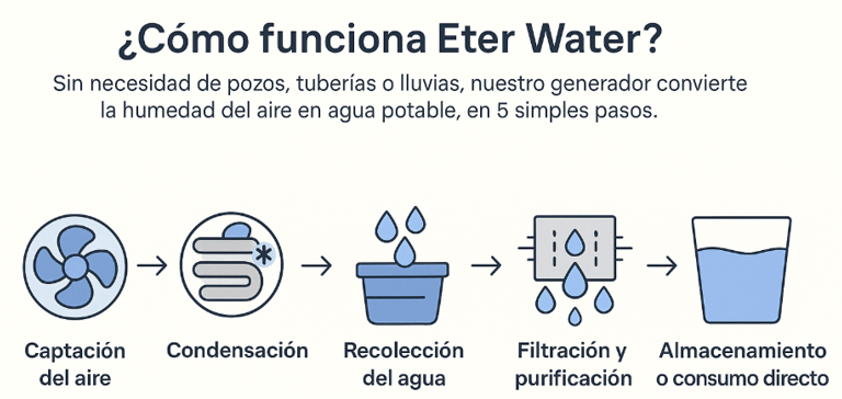 Un generador de agua atmosférica o AWG por sus siglas en Inglés (Atmospheric Water Generator), es un sistema diseñado para extraer la humedad del aire y convertirla en agua potable, utilizando principios termodinámicos de condensación, se hace pasar una corriente de aire por una superficie fria, emulando el principio de la lluvia y extrayendo la humedad en gotas, logrando así obtiener el agua de la manera más limpia y pura posible.